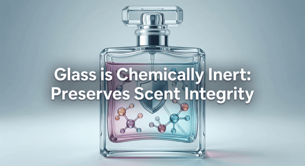 Glass is inert. It will not react with the alcohol or the essential oils. How long can perfume last in a bottle made of plastic? Not long. The plastic may leach chemicals into the scent, or the scent may eat away at the plastic. Glass ensures the scent remains exactly as the perfumer intended.
