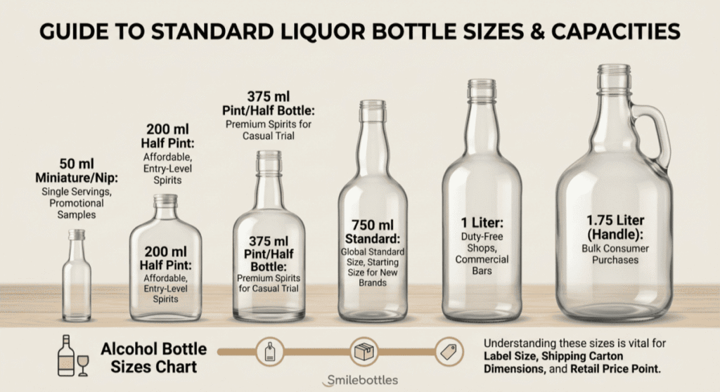If you are planning your product lineup, creating an internal alcohol bottle sizes chart will help you align your packaging choices with your target retail price and consumer usage habits. Understanding these liquor bottle sizes is vital for accurate inventory and logistics planning.