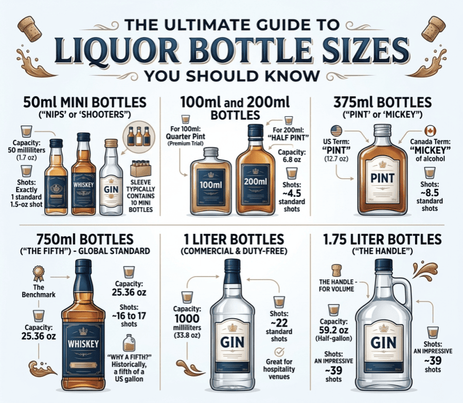 One of the most confusing aspects for new brand owners is navigating the various sizes of liquor bottles. Consumers and retailers use specific terminology, and understanding the math—like how many shots are in a fifth or how big is a handle of alcohol—is essential for pricing and market positioning. Let’s break down the standard liquor bottle sizes.