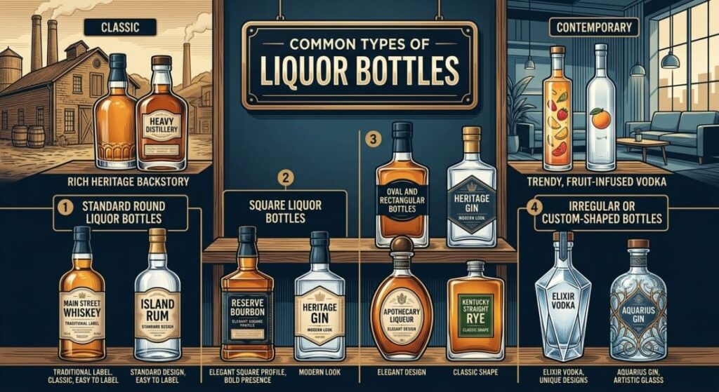 Beyond just size, the shape and style of your container dictate its market appeal. Understanding the different types of liquor bottles is vital for brand alignment.