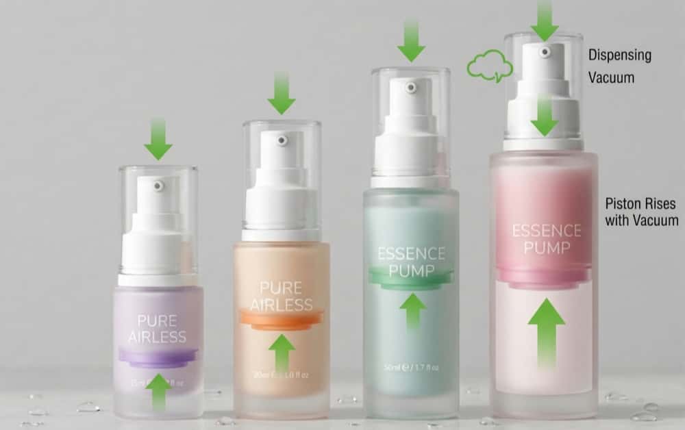 A3: A standard pump uses a tube and allows air in. An airless pump bottle uses a vacuum and a rising piston, keeping air out.