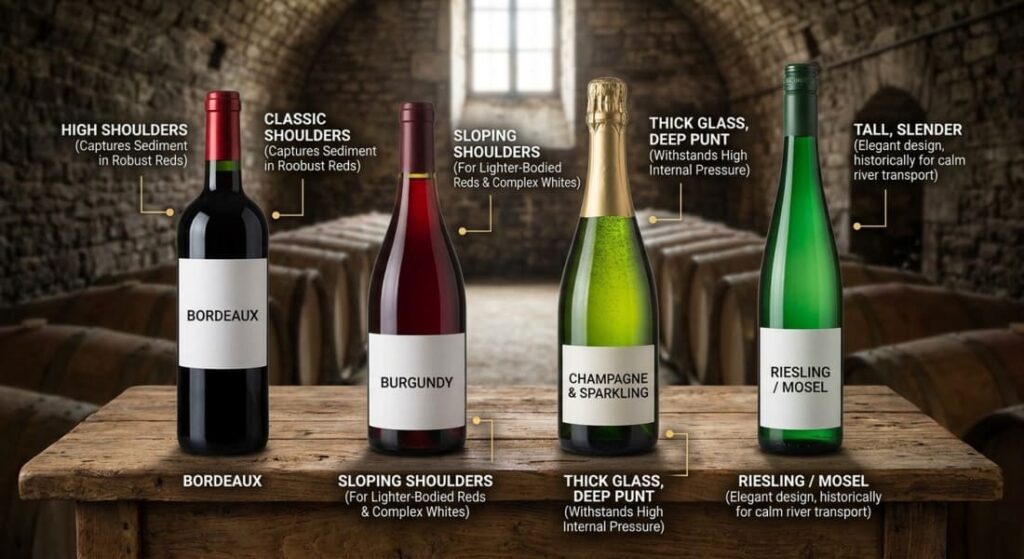 As a B2B buyer, you know that bottle shape is not just about looking pretty; it is a geographic and historical indicator of the style of the liquid inside. Understanding the different types of wine bottles will help you align your product with long-standing consumer expectations. If you bottle a Cabernet in a Riesling flute, you will likely confuse your buyers.