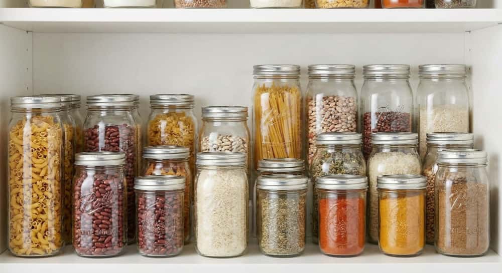 Glass jars for kitchen storage: Perfect for holding grains, nuts, or coffee.